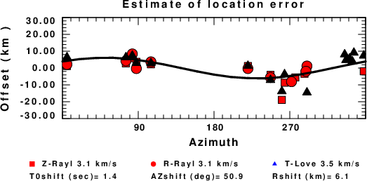 A check on the assumed source location is possible by looking at the time shifts between the observed and predicted traces. The time shifts for waveform matching arise for several reasons: