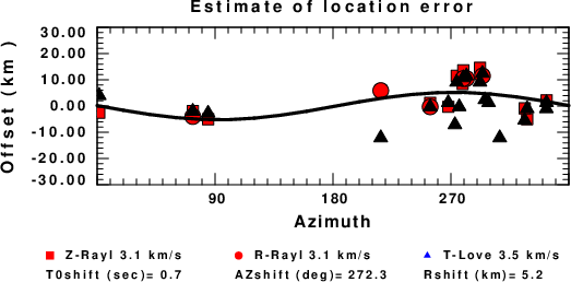 A check on the assumed source location is possible by looking at the time shifts between the observed and predicted traces. The time shifts for waveform matching arise for several reasons: