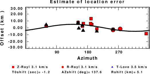 A check on the assumed source location is possible by looking at the time shifts between the observed and predicted traces. The time shifts for waveform matching arise for several reasons: