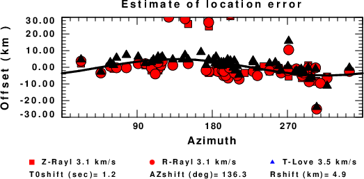 A check on the assumed source location is possible by looking at the time shifts between the observed and predicted traces. The time shifts for waveform matching arise for several reasons: