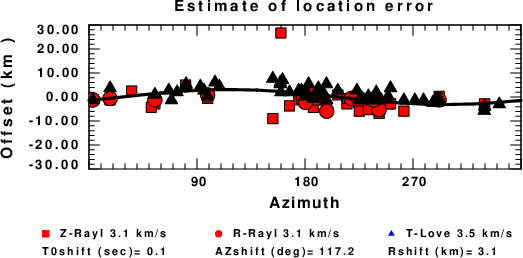 A check on the assumed source location is possible by looking at the time shifts between the observed and predicted traces. The time shifts for waveform matching arise for several reasons: