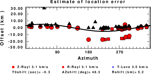 A check on the assumed source location is possible by looking at the time shifts between the observed and predicted traces. The time shifts for waveform matching arise for several reasons: