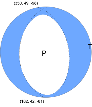 Moment Tensor (TDMT) Moment 5.091e+14 N-m Magnitude 3.74 Depth 4.0 km Percent DC 91% Half Duration - Catalog UU Data Source UU Contributor UU Nodal Planes Plane Strike Dip Rake NP1 182 42 -81 NP2 350 49 -98 Principal Axes Axis Value Plunge Azimuth T 4.965e+14 3 86 N 0.243e+14 6 356 P -5.208e+14 83 206 |