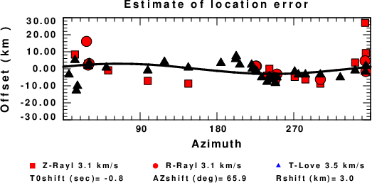 A check on the assumed source location is possible by looking at the time shifts between the observed and predicted traces. The time shifts for waveform matching arise for several reasons: