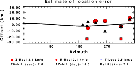 A check on the assumed source location is possible by looking at the time shifts between the observed and predicted traces. The time shifts for waveform matching arise for several reasons: