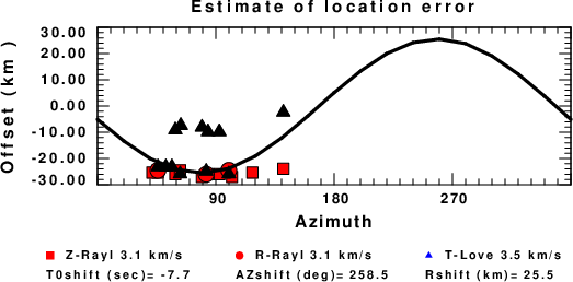 A check on the assumed source location is possible by looking at the time shifts between the observed and predicted traces. The time shifts for waveform matching arise for several reasons: