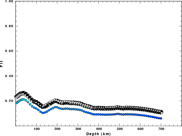 The following figures show the sensitivity of the goodness of fit parameter so source depth, the waveform comparison as a function of epicentral distance in degrees and the source to station azimuth