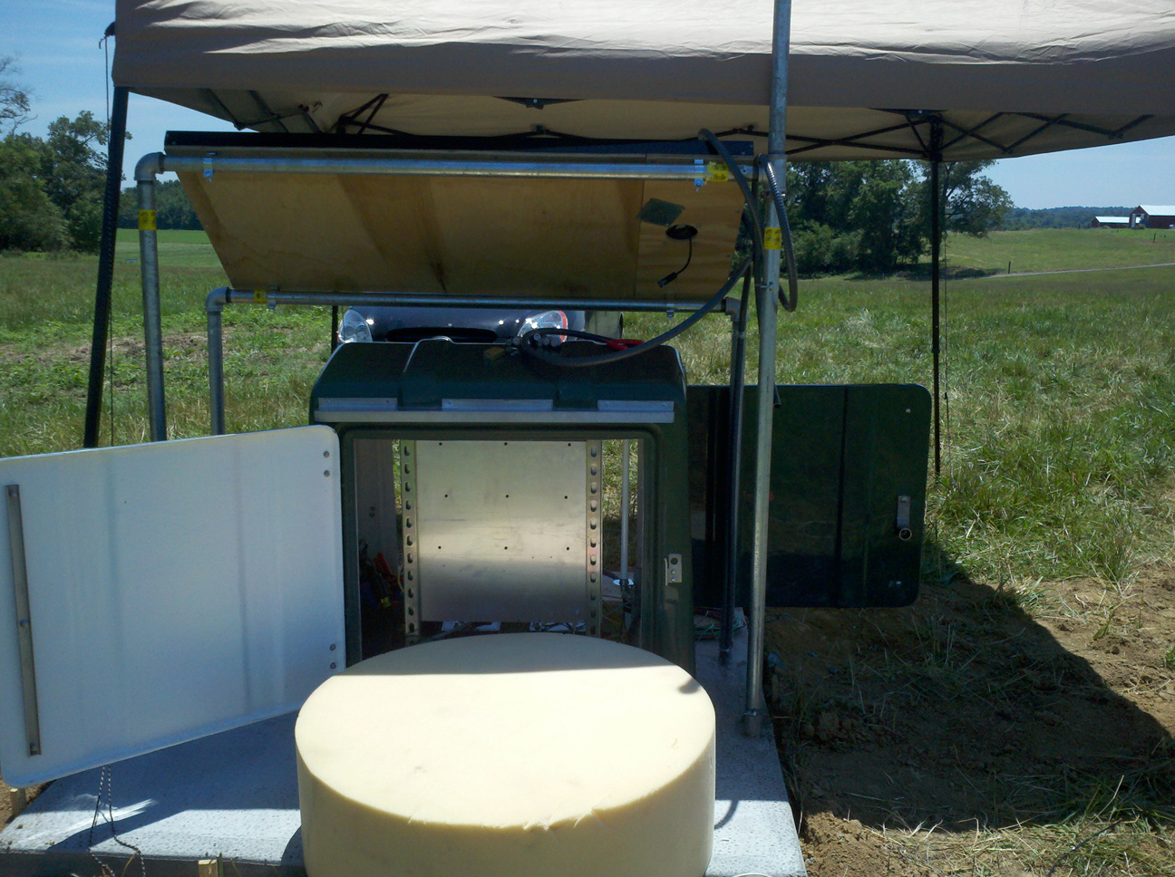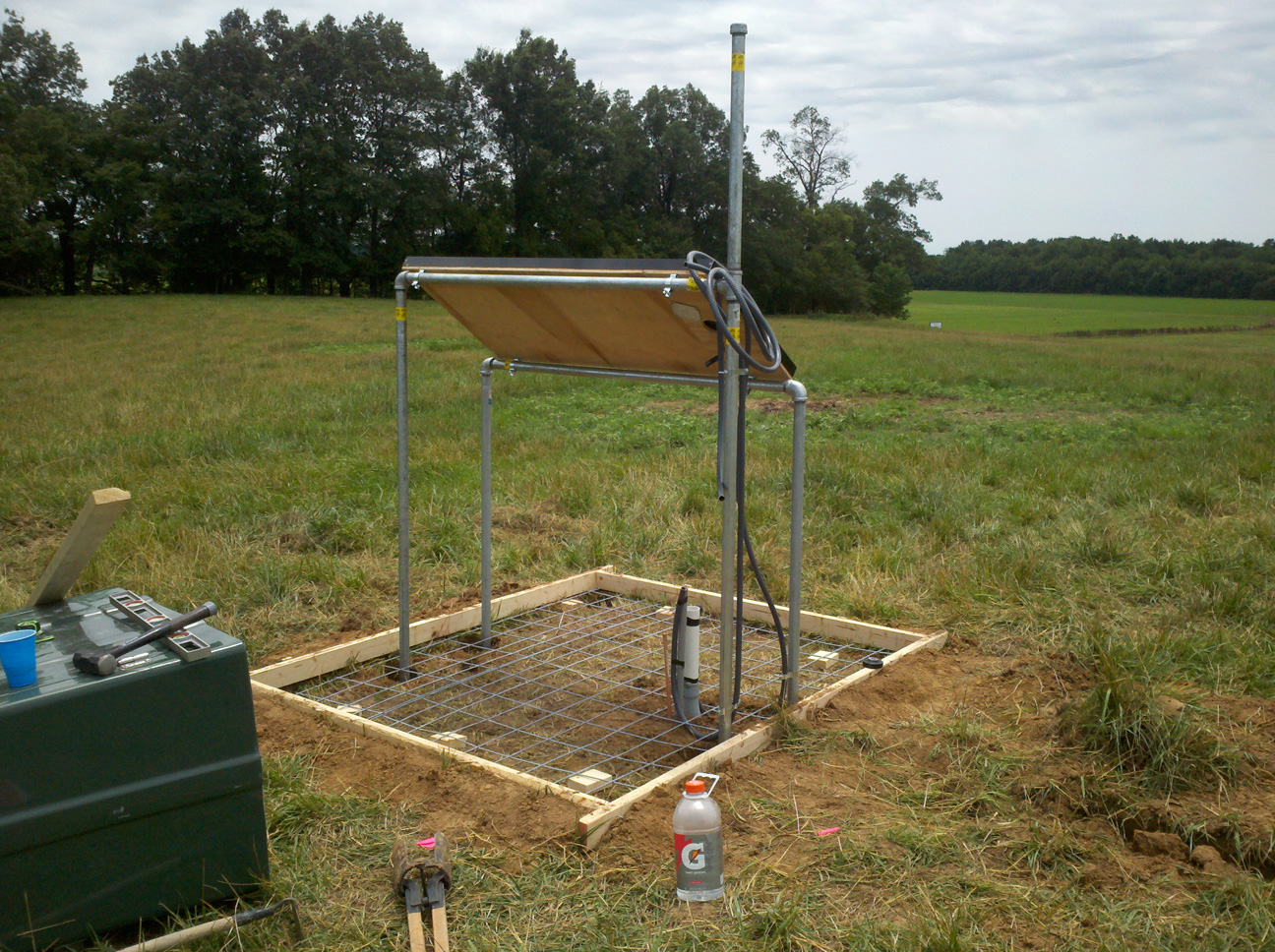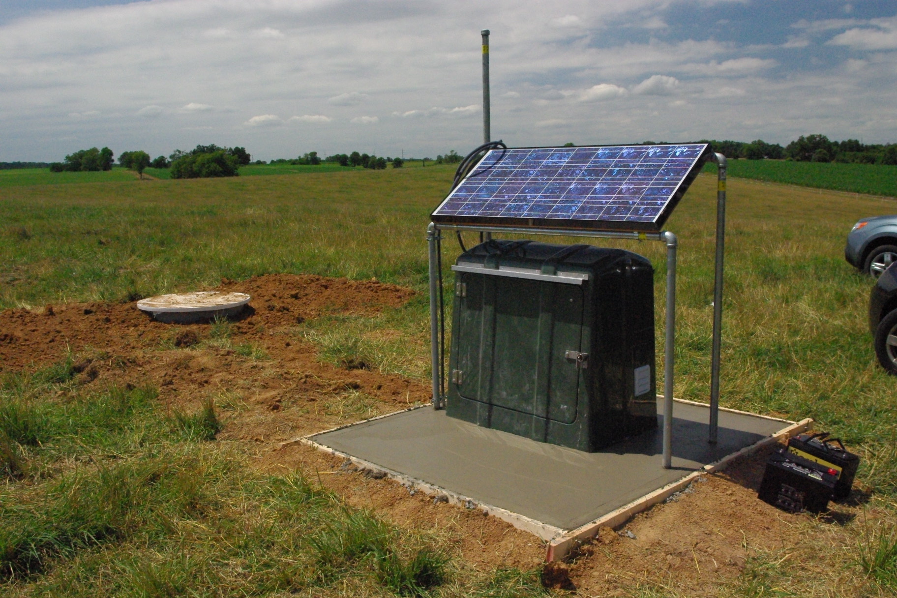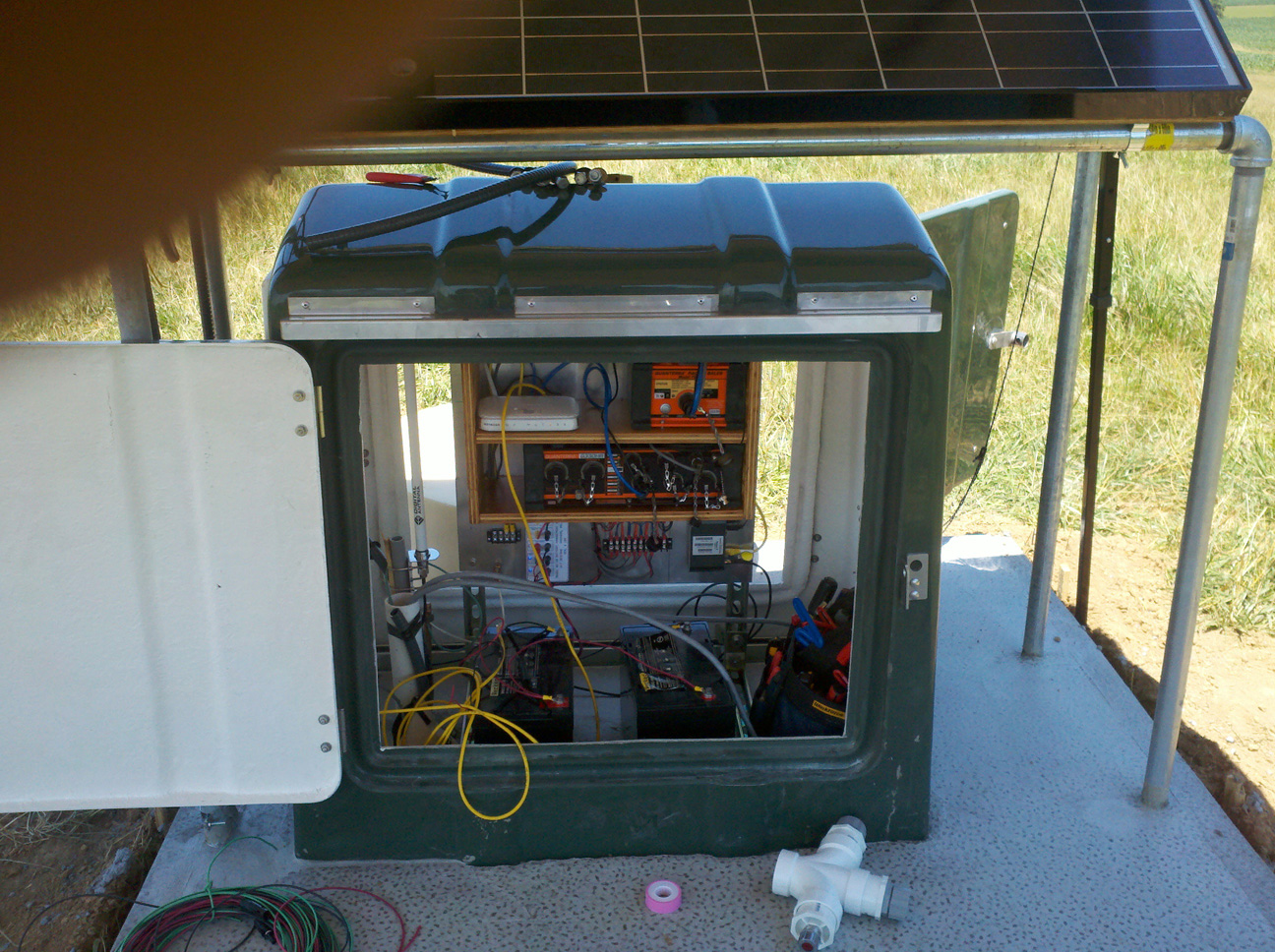 Electronics enclosure - cell phone modem and antenna, solar charger, Q330 data recorder, Q330 baler, router and batteries