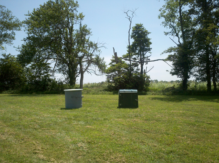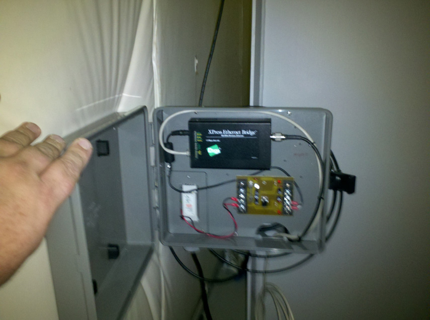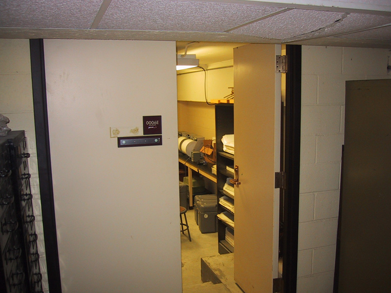 Telemetry receive antenna, spread spectrum receiver enclosure inside museum storage complex