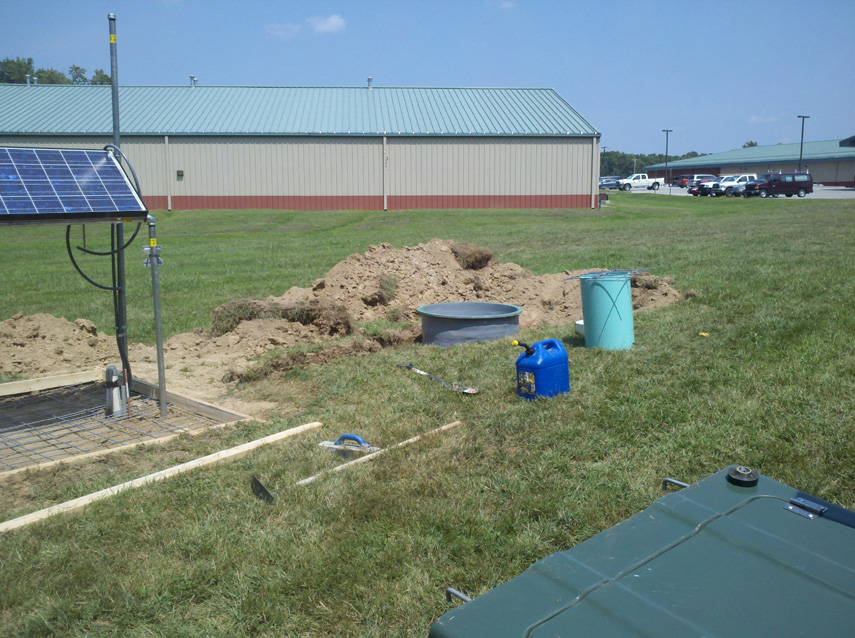 Preparing to lay concrete slab to anchor solar panel and electronics enclosure