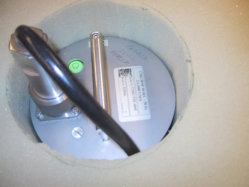 Sensor (inside foam insulation) on pier and Quanterra data acquisition system