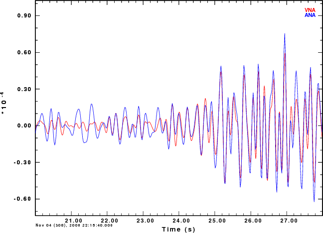 Waveforms from the CERI Earthworm tank for the station LNXT were obstined for the eathquake on Nov 04 (308), 2006 22:15:40.000. The following traces were examined: LNXT.HHE.NM LNXT.HHN.NM LNXT.HHZ.NM LNXT.HNE.NM LNXT.HNN.NM LNXT.HNZ.NM The HH traces were sampled at 100 HZ and the HN at 50 Hz.